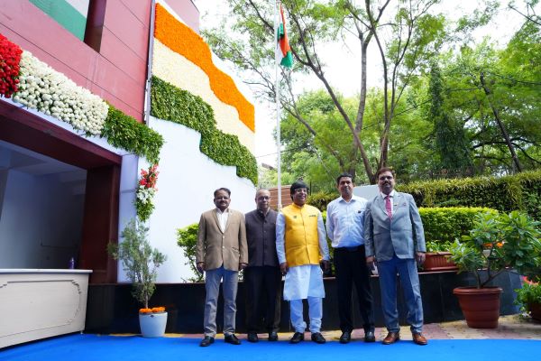 at Head Office, unfurled the tricolour at the NMDC Corporate Office at Hyderabad in the presence of functional directors of NMDC, Dilip Kumar Mohanty, Director (Production); Vishwanath Suresh, Director (Commercial); Vinay Kumar, Director (Technical), B. Vishwanath, Chief Vigilance Officer, Senior Officials and employees.