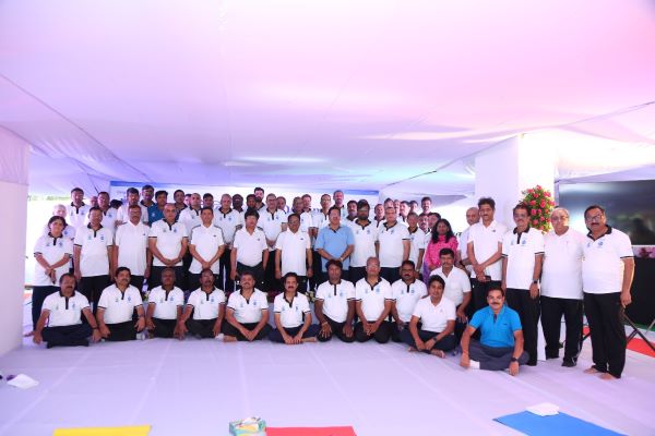 Led by Amitava Mukherjee, CMD (Additional Charge), V Suresh, Director (Commercial) and Vinay Kumar, Director (Technical), NMDC employees practiced yoga asanas and pranayama kriya demonstrated by teachers from Namaste India Foundation.