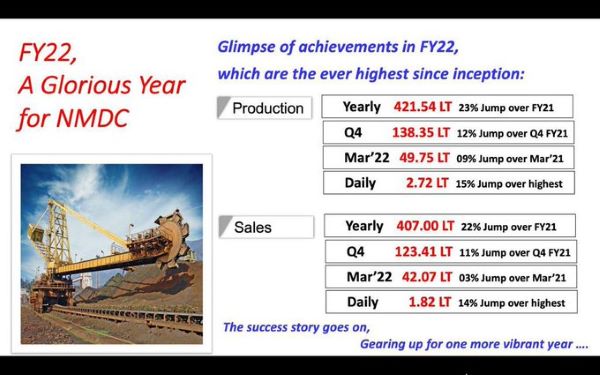 Deb’s tenure also marks best ever performance in the books. NMDC produced 42.19 MT and sold 40.56 MT of iron ore during the FY22. With this, the company registered the strongest ever growth since inception. While the production was up by 24 per cent over last fiscal’s production of 34.15 MT, NMDC recorded a growth of 22 per cent over the 33.25 MT sold in FY21.