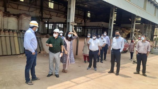 Bastar District Collector Rajat Bansal along with senior officials of the administration today visited the NSP and inspected the on-going construction work of the oxygen plant. He held discussion with the top officials of the plant to design a work plan for the effective execution of the project. The NMDC had already accelerated the work.
