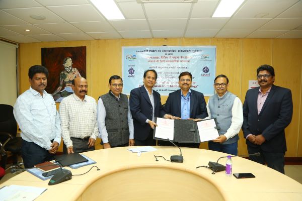 The Agreement was signed between S K Chaurasiya, GM, R&D from NMDC and Dr. Ashok Kumar Sahu, Chief Scientist and Head, Strategy Planning & Business Development, from CSIR-IMMT in the presence of NMDC’s Director (Production) Dilip Kumar Mohanty, senior officials of NMDC and Dr. Kali Sanjay, Chief Scientist and Head, Hydro & Electrometallurgy Department, CSIR-IMMT.
