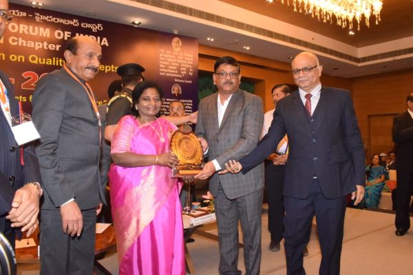 Governor of Telangana Smt Tamilisai Soundararajan presented the Award to NMDC for its indispensable contribution to the QC Movement in Hyderabad and India.