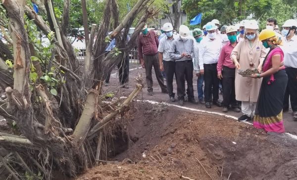 SP-3 collective under the guidance of S V Nandanwar, CGM(SP-3) took up the challenge to shift the 20-year-old tree. The pit was dug and soil was made moist around the tree for 3 days. Omega Crane was used in supporting and lifting the tree. Special care was taken for keeping the roots and surrounding clumps of soil intact during uprooting of the tree.