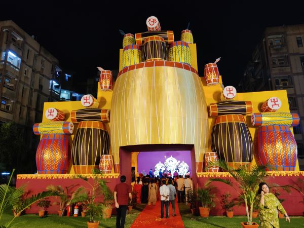 The pandal this year has been prepared by artist from Kolkata, which depicts the traditional musical instrument of Bengal, Dhak and Dhol. The pandal premises in lined up with various stalls of food items, art effects etc. Cultural programme is being organized every evening.
