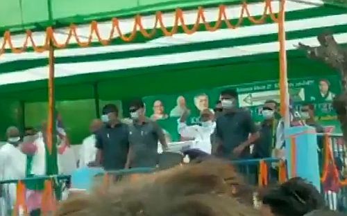 However, security personnel continued to guard him. CM continued his speech and claimed in the last 15 years of NDA rule he had given protection for the STs/SCs and OBCs and given them reservations in jobs.