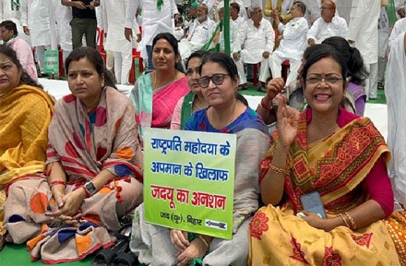 JDU on Sunday organised a state wide dharna in protest against inauguration of new Parliament building by the Prime Minister, Narendra Modi. At Patna, leaders sat on dharna at Ambedkar statue opposite Patna High Court.