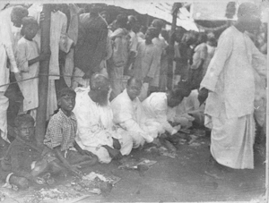 The first priest of this Puja was Late Dr. Chapala Kanta Bhattacharya. In the first year Late Nitai Chandra Pal was the artist of the idol. Initially, as was customary, the idol was built in one canvas and the puja pavilion roofing was of bulrush leaves. The worship was conducted with remarkable respect and devotion.