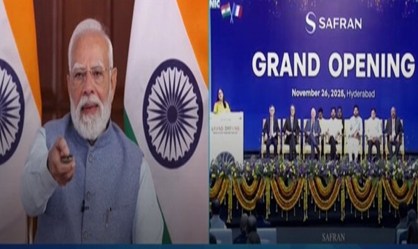 Prime Minister Narendra Modi inaugurated the Safran Aircraft Engine Services India (SAESI) facility located at the GMR Aerospace and Industrial Park – SEZ, Rajiv Gandhi International Airport, Hyderabad via video conferencing today.