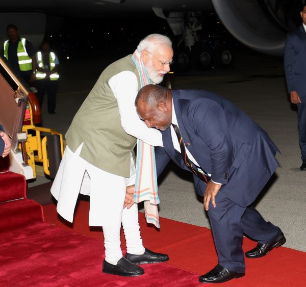 While receiving him at the airport, Papua New Guinea’s Prime Minister James Marape displayed a surprising gesture by touching his feet. This was followed by a hug between the two counterparts, after which PM Modi was introduced to other officials.