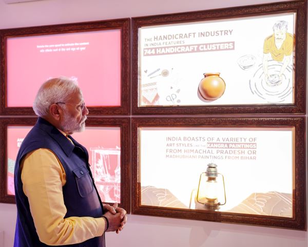 The Prime Minister, Narendra Modi visited Anubhuti Kendra at Bharat Mandapam on completion of 3 years of GatiShakti today.