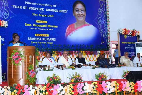 The President of India, Droupadi Murmu graced the state level launch of the theme of the year “The Year of Positive Change” of Brahma Kumaris at Raipur in Chhattisgarh today.