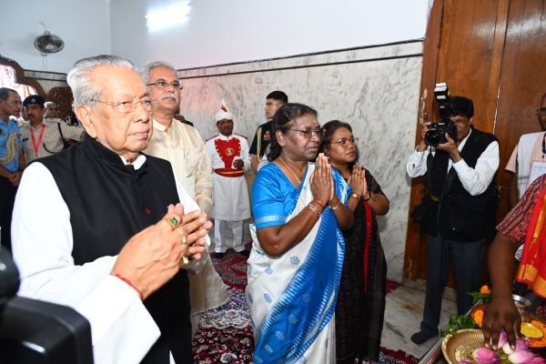 Accompanied by her daughter Itishree Murmu, Chhattisgarh Governor Biswabhusan Harichandan and Chief Minister Bhupesh Baghel, the President reached the temple located at the Gayatri Nagar. Besides the members of the Temple Committee, the bureaucrats affiliated to the state of Odisha received Murmu at the temple premises.