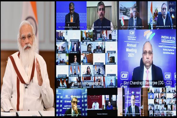 Addressing the Confederation of Indian Industry (CII) Annual Meeting 2021 today via video conferencing, the Prime Minister said that the CII meeting was taking place on the eve of the 75th Independence Day, in the midst of the Azadi ka Amrit Mahotsav. He said this was a huge opportunity, for new resolutions and for new goals of the Indian industry. The Prime Minister lauded the industry for their resilience during the pandemic