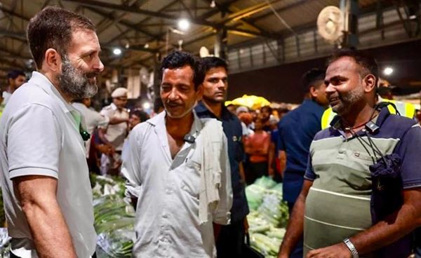 Senior Congress leader Rahul Gandhi on Tuesday morning visited the Azadpur Mandi in the national capital and interacted with some vegetable and fruit vendors.