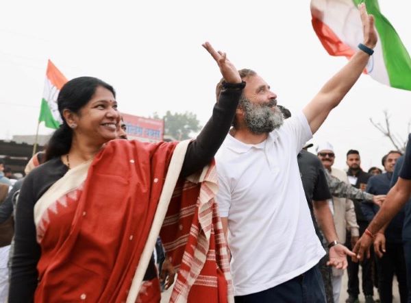 Senior DMK MP Kanimozhi, who failed to join the Yatra in her home state of Tamil Nadu, today marched with with Rahul Gandhi.
