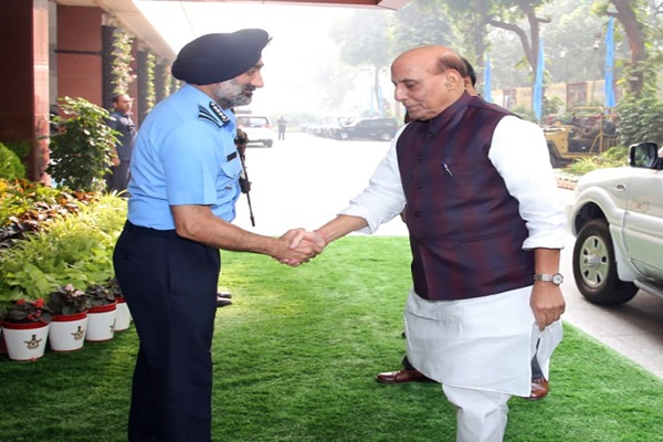 Upon his arrival at Air Headquarters, the Hon’ble Raksha Mantri was welcomed by the Chief of the Air Staff (CAS), Air Chief Marshal A P Singh. The Raksha Mantri was briefed on the operational capabilities of the IAF.