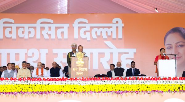 The swearing-in ceremony was held at the historic Ramlila Ground in a grand show of strength that marked the party’s return to power in the national capital after more than 26 years. The function was attended by Prime Minister Narendra Modi, the top BJP brass and NDA chief ministers.