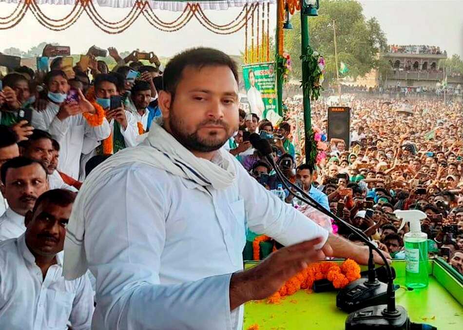 RJD leader Tejaswhi Prasad Yadav, who had started his election campaign with six public meetings last week created a record by attending rallies at 12 places, criss crossing the state.
