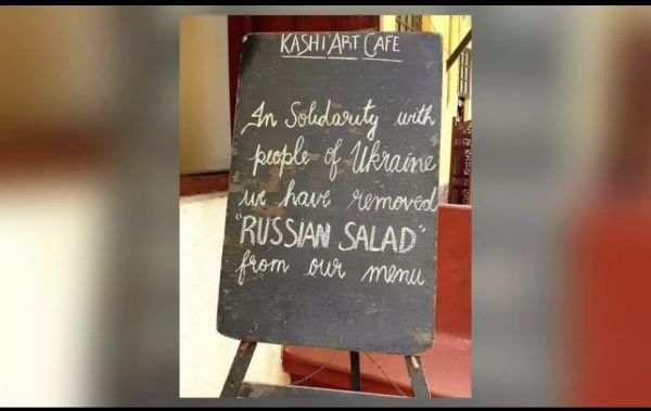 The Kashi Art Café in Fort Kochi made the announcement in view of the what it felt unfolding human tragedy In Ukraine. A slate board outside the restaurant reads: “In solidarity with the people of Ukraine, we have removed ‘RUSSIAN SALAD’ from our menu”.
