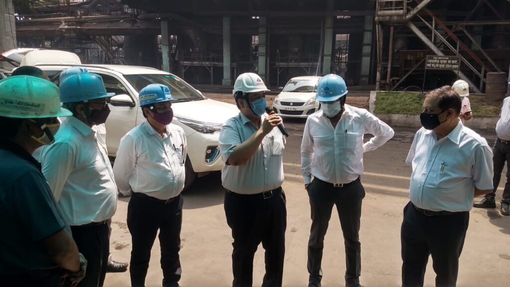 Accompanied by senior officers of the Plant, Director I/c SAIL-Bhilai Steel Plant Anirban Dasgupta, Executive Director Works Rajeev Sehgal personally visited blast furnaces, steel melting shop, Bar & Rod Mill, Universal Rail Mill, Refractory Material Plant 3 today to congratulate employees for their record making performances.