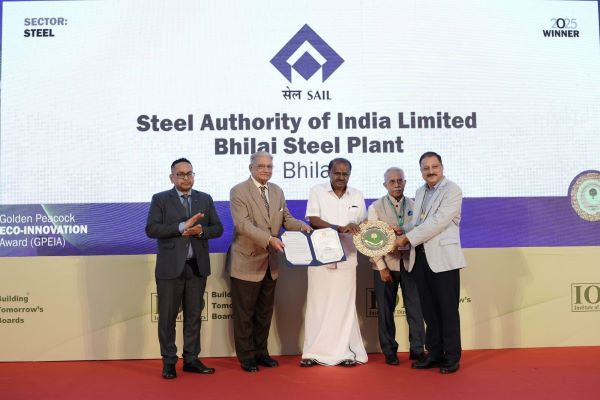 SAIL-Bhilai Steel Plant, has been conferred with the prestigious Golden Peacock Eco-Innovation Award 2025. The recognition was bestowed by the Institute of Directors (IOD), New Delhi, in acknowledgement of the BSP’s pioneering initiatives in environmental sustainability and innovation.