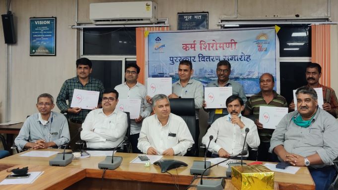 Pali Shiromani Award winners of 4 zones of P and E included Shakti Kumar Manikpuri, AGM, OP-II, Sushildev Bhalekar, Asstt. Manager, PEM, M C Joy, Asstt. Manager, DNW and Suresh Kumar Nagdeo, Asstt. Manager, Instrumentation(O) and Karm Shiromani Award winners Dilip Kumar, OCT, OP-II., Nisir Biswas, Sr. Techn., PEM, K Balkrishna , C/Man sum Sr. Technician, HME and Ram Bachan Sahu, Chargeman, Instrumentation(O), were felicitated for their exemplary work.