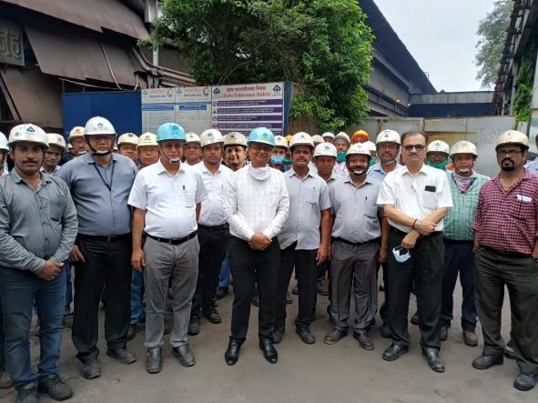 Executive Director (Works) Anjani Kumar personally visited Merchant Mill on Monday and congratulated the Mill leadership and collective for their record breaking and consistent performances. He was accompanied by CGM I/c Services S N Abidi.