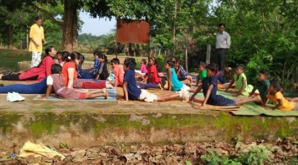 SAIL-Bhilai Steel Plant supported DAV Rowghat Ispat senior Secondary Public School in Antagarh organised Yoga classes for tribal children on International Yoga Day today.