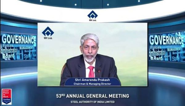 Steel Authority of India Limited (SAIL) conducted its 53rd Annual General Meeting (AGM), today at Chinamaya Mission, New Delhi where Chairman & Managing Director, SAIL Amarendu Prakash addressed the shareholders in the meeting, held through a virtual platform, highlighting the Company’s resilient performance amid global headwinds and its strategic roadmap for future growth.