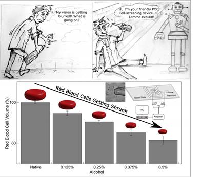 Scientists have custom-made a platform to detect the effect of prolonged alcohol exposure on Red Blood Cells (RBC) through high-resolution measurements of their size. The high-resolution platform that shows the reduction in size of RBCs on alcohol exposure can be tuned for a point-of-care screening of multiple conditions that alter the size and count of RBCs in blood.