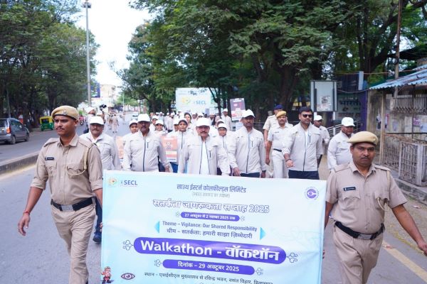 The walkathon was flagged off by SECL CMD Harish Duhan, along with Director (Technical/Operations) N Franklin Jayakumar, Director (HR) Biranchi Das, Director (Technical/Planning & Projects) Ramesh Chandra Mahapatra, and Chief Vigilance Officer Himanshu Jain.