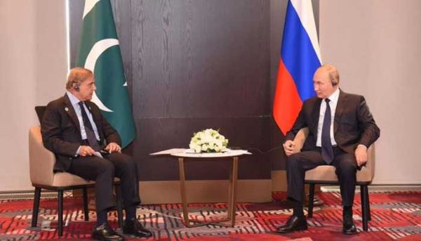 राष्ट्रपति पुतिन और पाकिस्तानी प्रधान मंत्री शहबाज शरीफ ने आज उज्बेकिस्तान के समरकंद में शंघाई सहयोग संगठन (एससीओ) शिखर सम्मेलन के मौके पर मुलाकात की।
