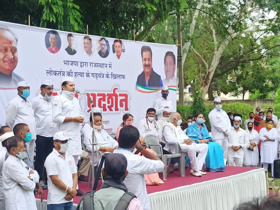 In the facebook message, Vaibhav commented that addressed the program on the call of the state Congress committee against the conspiracy of democracy in Rajasthan by the BJP on the occasion of the demonstration in Jaipur.