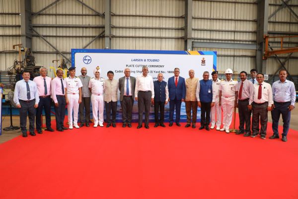 The Steel Cutting ceremony of the third Cadet Training Ship (Yard-18005) was held at M/s L&T Shipyard, Kattupalli, on Saturday.