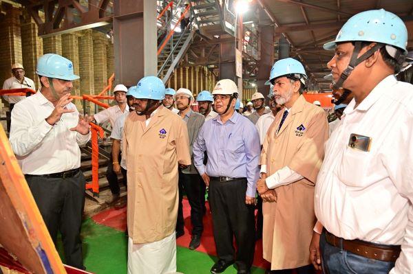 At the outset, Kumaraswamy and Amarendu Prakash reached the Safety Excellence Centre, where they were briefed about necessary safety instructions for visiting the Plant. During the Plant visit, Union Heavy Industries and Steel Minister took keen interest in operations at Modex Units, including Battery 7 and 8 of Coke Oven and Coal Chemicals Department, Blast Furnace-8, Steel Melting Shop-3, and Universal Rail Mill.
