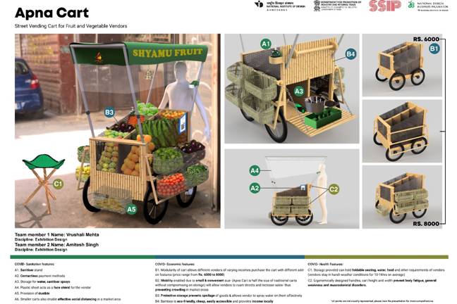 National Institute of Design, Ahmedabad coordinated with other NIDs and conducted a Design Hackathon for designing new carts to cope with the recent challenges emerging due to COVID-19. After selection, it is also proposed to offer these models in mass scale to street vendors.