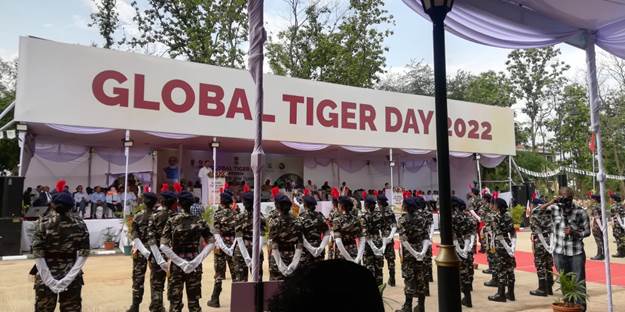 Global Tiger Day celebrations were held in Forest Academy in Chandrapur. Union Minister received the guard of honour by Special Tiger Protection Force, an exclusive regimented strike force from Tiger Reserves of Maharashtra and Kerala Forest Department.