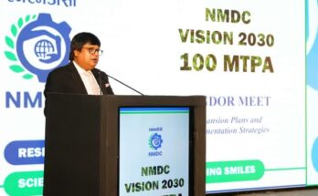 NMDC’s target of 100 million tonnes by 2030 is inspired by the vision of the National Steel Policy to build raw material security and self-reliance in the iron and steel sector of India.