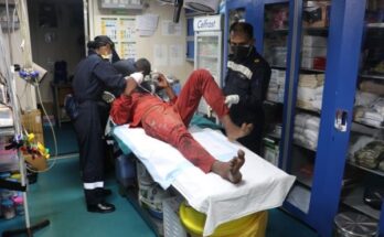 He was treated onboard to arrest bleeding and achieve hemodynamic stabilisation.