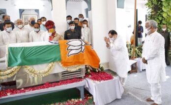 BJP party flag over Indian tricolour on Kalyan Singh’s mortal remains Read More