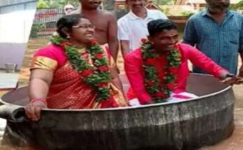 They travelled nearly 500 metres on the traditional vessel for their wedding held in a local temple at Thakazhi near Alappuzha.