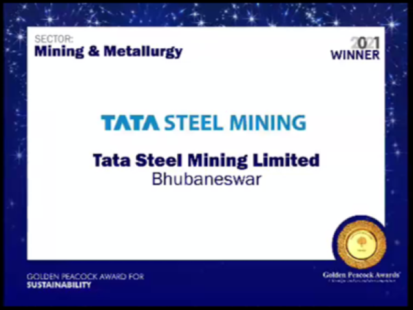 Tata Steel Mining Limited (TSML) has been honoured with the prestigious Golden Peacock Award for Sustainability, 2021, in recognition of the company’s significant accomplishments in sustainability and ongoing efforts to promote and implement high standards of environmental, social, and corporate governance practices.
