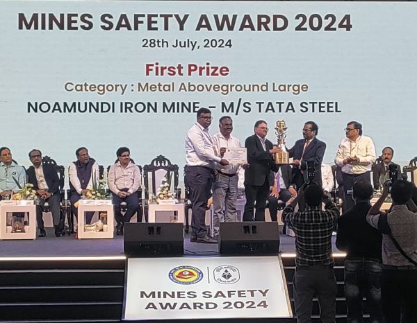 Tata Steel’s Noamundi Iron Mine, has been honoured with the first prize for outstanding performance in the “Metal Above Ground – Large” category at the Mines Safety Award-2024, organised by All India Mines Safety Association under the aegis of Directorate General of Mines Safety (DGMS) at Kolkata on Sunday.