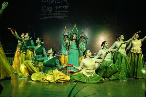 Ms. Tabu Parbeen’s Group of Raigarh Gharana delivered a spectacular Kathak dance performance during which little young girls took the spotlight, captivating the audience. Aashna Delhiwar’s Kathak performance left spectators amazed. Mr. Ibrar Ahmed and Mr.Sanjay Chauhan from Raigarh had everyone dancing with their Chhattisgarhi bhajan and folk singing. Ms. Suhani Swarnakar from Sarangarh showcased Kathak, while Dr. Gaurav Kumar Pathak from Bilaspur mesmerised the audience with classical singing. Mr.Yuvraj Singh Azad and his group from Raigarh presented a brilliant IPTA drama. Anvika Vishwakarma’s tabla beats and music accompanied a captivating presentation on Shivtandav and Krishna Leela. The Bharat Natyam performance by Mr. Anil Tandi, a student of Indira Kala Sangeet Vishwavidyalaya in Khairagarh, and the group from Bhilai amazed the audience. Along with his disciples, he performed Bharatnatyam dances in Saraswati Shloka, Jati-Swaram, and Devi Keertanam.