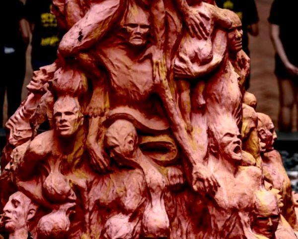 कलाकार, चेन वेइमिंग, जिन्होंने मूर्ति और दीवार राहत दोनों का निर्माण किया, ने कहा, “हांगकांग की स्वतंत्रता मर चुकी है।”