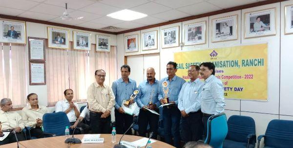 A team of three employees from SAIL-Bhilai Steel Plant’s Coke Ovens and Coal Chemicals department bagged the first prize in Hazard Analysis Competition organised as part of World Steel Safety Day celebrations by SAIL Safety Organisation (SSO).