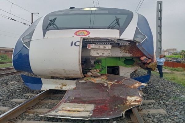 The front portion of the train was damaged in the accident. The semi-high-speed train between Gandhinagar and Mumbai was flagged off by Prime Minister Narendra Modi a few days ago. The train was on its way from Mumbai to Gandhinagar.