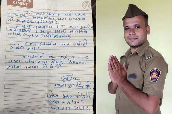 Manoj Chaudhary, a Jalgaon ST bus conductor committed suicide by hanging himself this morning. In his suicide note, he has blamed the ST corporation and Thackeray government for the non-payment and reduction in salary since last several months.