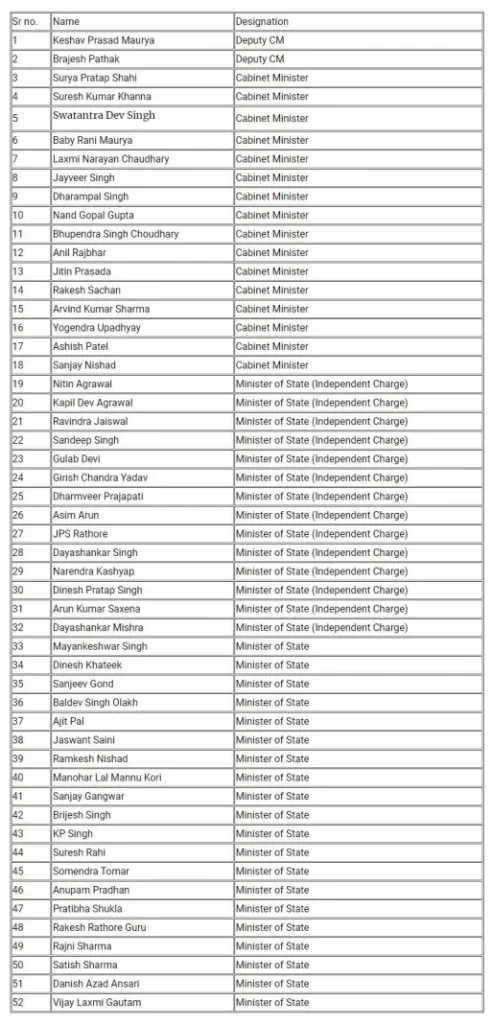List of Yogi Adityanath Cabinet: